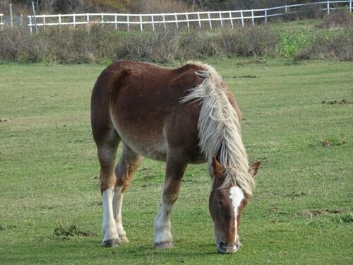 下北の旅行から。 色づいた小道を進むと… 馬がいます。 寒立馬(かんだちめ)と言います。 農耕馬で、力があり、持久力を持ちます。 粗食に耐えることもでき、この田名部地区では大切にされてきました。 「寒立馬」の名は、ある校長先生が、馬と、その馬のい…