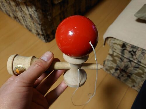スランプ中です。 けん玉も… まぁ、1回目は乗るから、そこまで深刻じゃないですけど… ていうか、スランプになるぐらいまで、上手くなってない!と言うのが正解! なかなか、この2回目が乗りません… 刺さるのは、8回だったかな? 8回で、成功! 多分、これく…