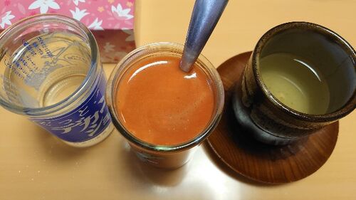 これ、冷蔵庫に冷やしておいたら、巨匠に見つかって!! 飲まれちゃいました… 巨匠は、あんまり一気には飲まない人。 グラスで、ちびりちびりやるんですが、「美味しい!」と気に入ったらしく! 飲みきらない前に、取り上げて!! 味見!! 確かに、美味しい…