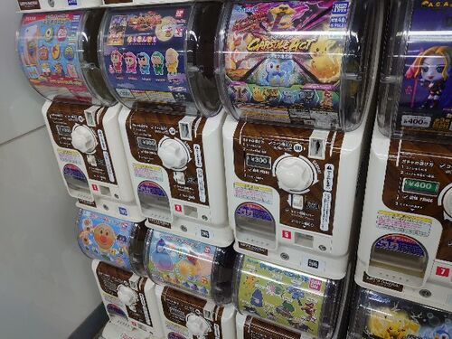 メトロ通路の、ガチャポンコーナー! 24時間…いや、初電から終電までかな? まだまだ、営業中です。 しんちゃん、引こうかと。 昔、東武の50050系の5本が、しんちゃんの絵柄でしたね~! 100円玉を、3枚! 入れて、ハンドルを回すも… 「回らない!」 中で引…